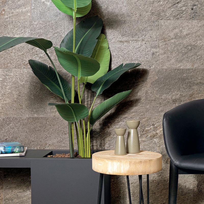 Norde se inspira en las cuarcitas, piedras típicamente aptas tanto para exteriores como para interiores. Compuesto casi en su totalidad por cuarzo y pequeñas cantidades de otros minerales que determinan las variaciones y matices cromáticos, el gres efecto piedra de esta colección se destaca por su fuerte realismo, sus gráficos detallados y su gran riqueza cromática.