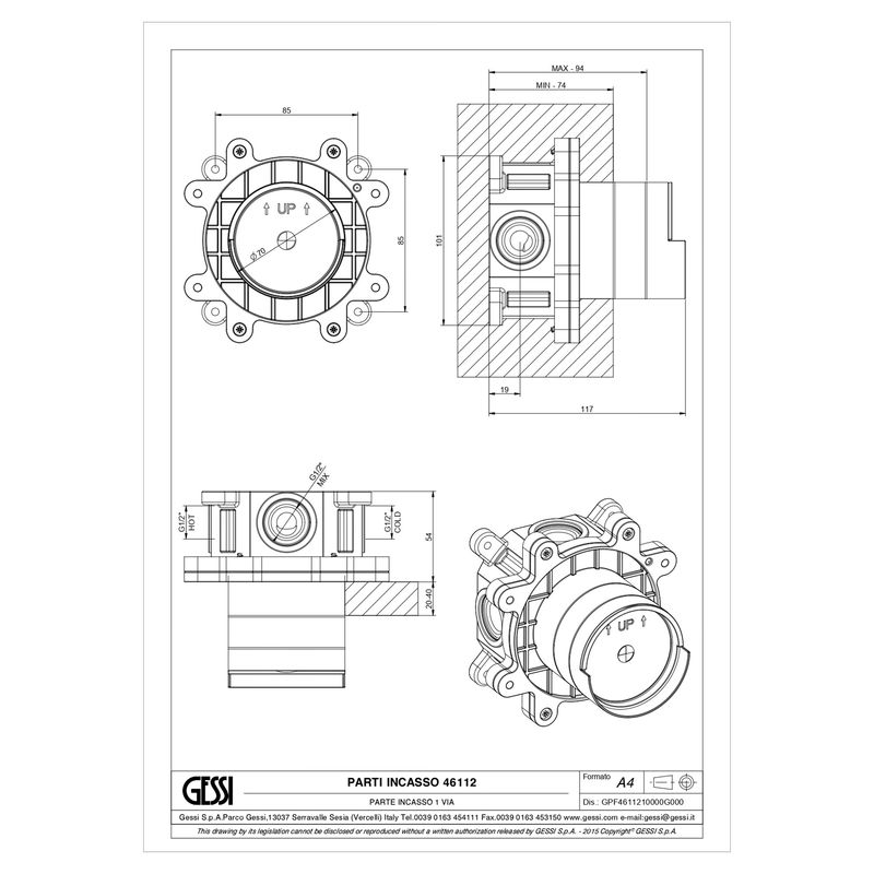 Observaciones | Cuerpo interno de GES-03-0219 Embellecedor Receptáculo mural Rettangolo 1 vía Cromado |