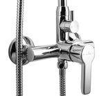 Columna de ducha de uso habitacional, en terminación cromo y de latón. Incluye flexible cromado de 150cm, ducha fono y excéntricas. No incluye accesorios de baño.