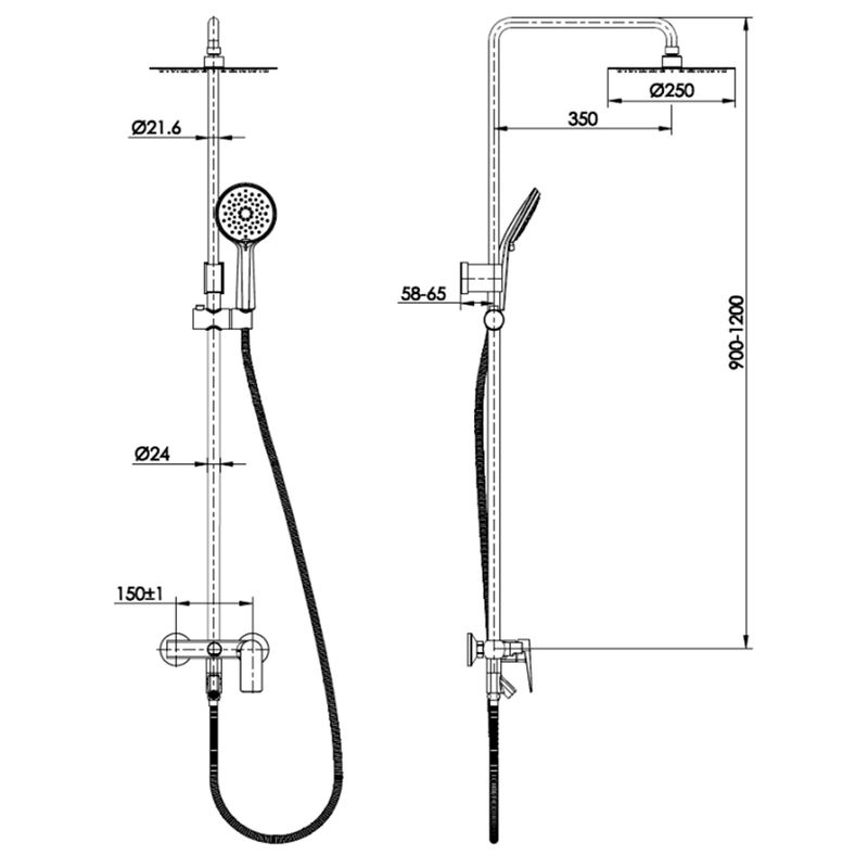 Columna de ducha tina de uso habitacional, en terminación cromada y de latón. Incluye flexible cromado de 150 cm, ducha fono y excéntricas. No incluye accesorios de baño.