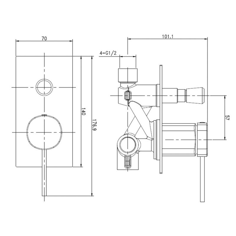 Mezclador de ducha tina de uso habitacional, en terminación gun grey y de latón. Instalación a muro y de 2 vías. No incluye ducha fono, flexible, plato de ducha y unión muro.