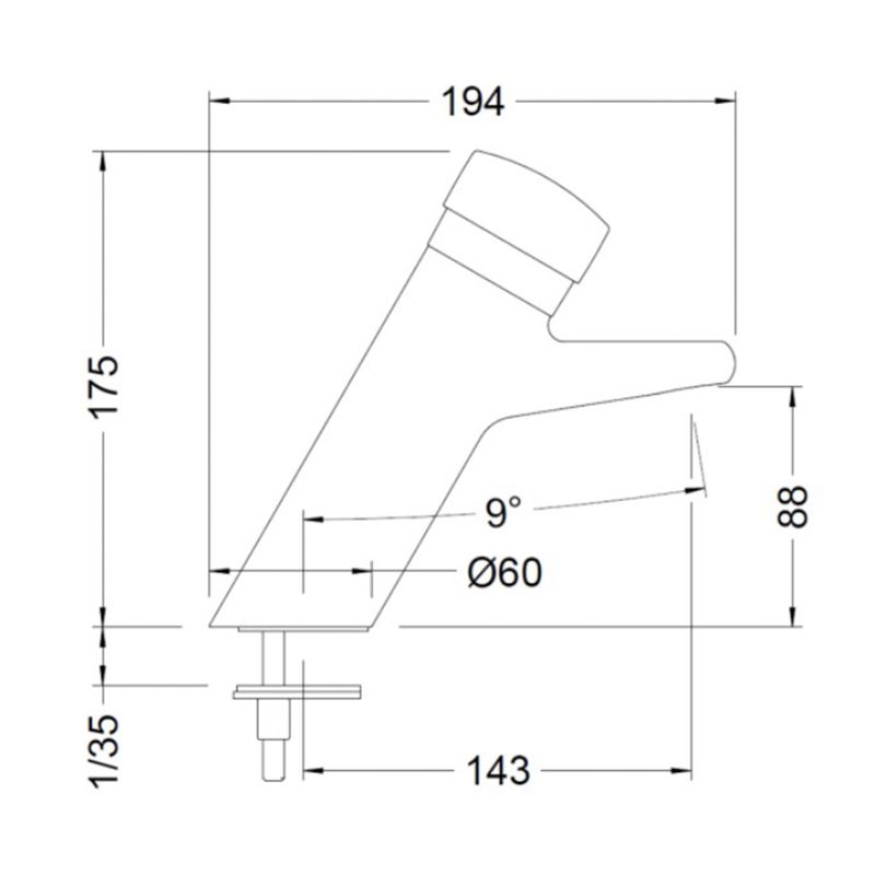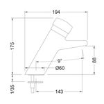 Grifería de Lavamanos temporizado Genebre para instalar en pared sobre cubierta. Dotado de un cartucho de cierre automático temporizado de 7 a 10 segundos. Provisto de un aireador antivandálico plástico antical y un filtro plástico antipartículas. Incluye válvulas antirretorno y conexiones flexibles.
