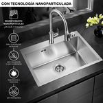 Lavaplatos sobrecubierta Melbourne de acero inoxidable con tecnología nanoparticulado con desagüe incluido. Capacidad para 42 lts. Medidas 650x450x210 mm