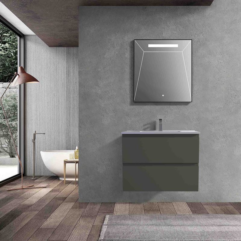Mueble de Baño Albany elaborado en MFC cuenta con acabado exterior en PET lo que brinda una terminación soft touch, lo que hace que al tocar su superficie, sientes una suavidad que invita a la relajación.