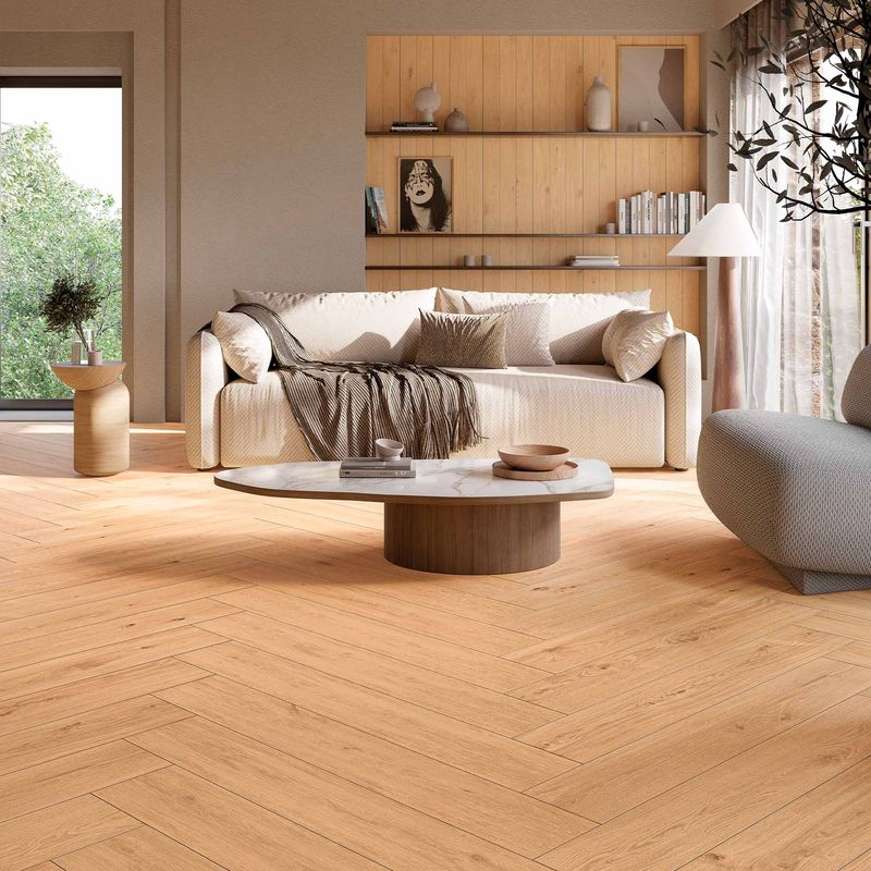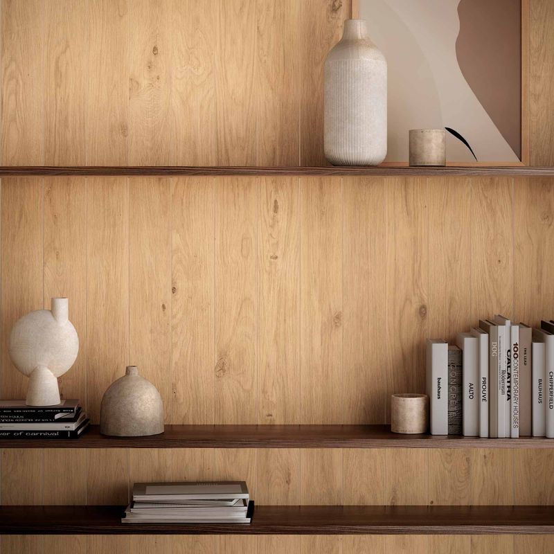 Porcelanato madera estilo roble realza la autenticidad de un material eterno y atemporal. Es una serie de 3 colores, cada una con la opción de elegir el tipo de selección de cada una. Podemos ver SELEZIONATO (selección de maderas más minimalistas), CLASSICO (versión más transversal donde se encontrarán diseños suaves y otras caras con nudos).