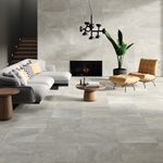 TRIUNFO Porcelanato esmaltado diseño tipo piedra en formato 60x120 y 60x60 cm rectificado que nace de la fusión de tres elementos, la textura de una quarcita, la superficie de un cemento vivido y de pequeñas incrustaciones “ciottolina”, que crean movimiento, profundidad y transmiten la historia del paisaje que nos rodea