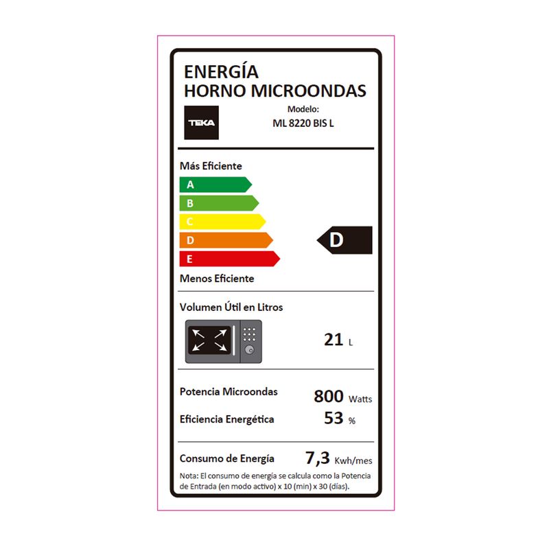 Presenta un consumo energético de 7,3 kWh/mes, contribuyendo a una operación eficiente. Este modelo no incluye funciones adicionales más allá de las especificadas.