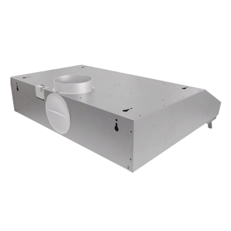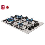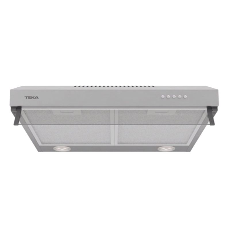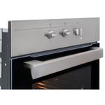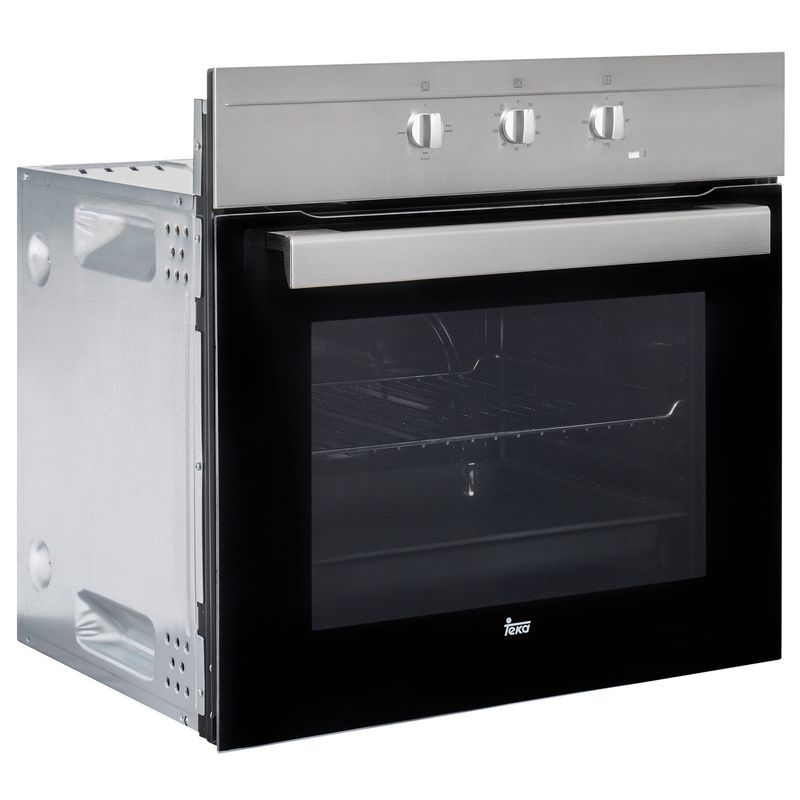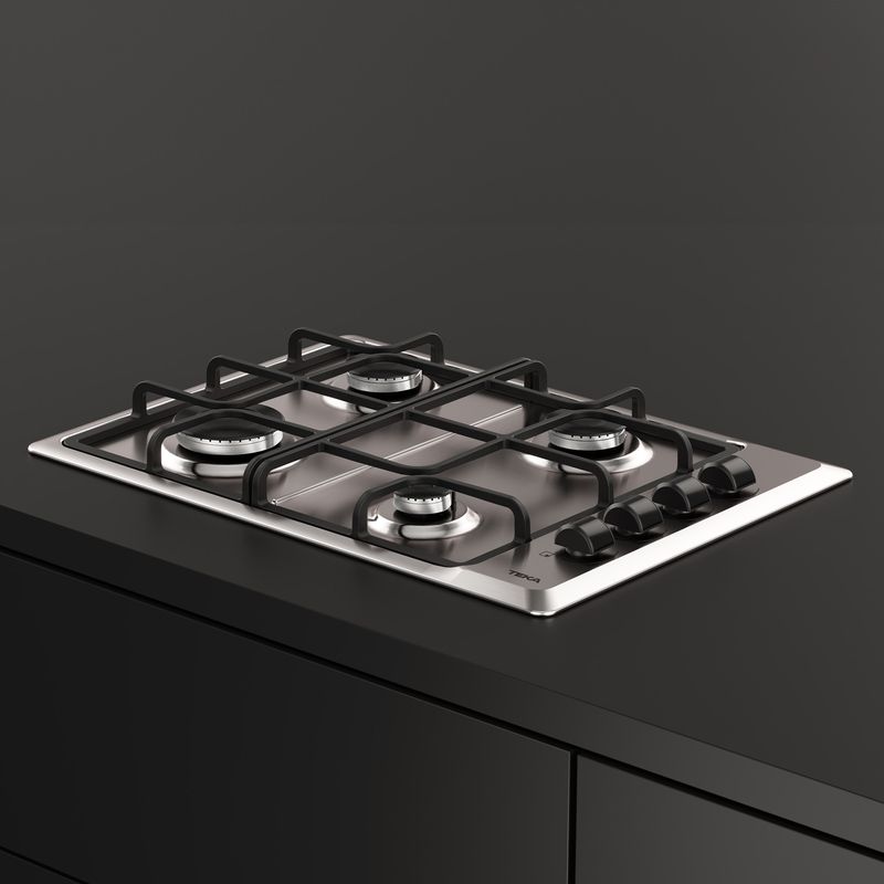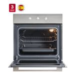Horno eléctrico con 3 funciones, temporizador, puerta de cristal extraíble y ventilación tangencial (Clase C). Encimera a gas butano con autognición, superficie de acero, parrillas de hierro fundido (Clase A), para muebles de 50 cm. Campana con visera abatible, extracción superior/trasera o recirculación (filtro incluido), ideal para optimizar espacio.
